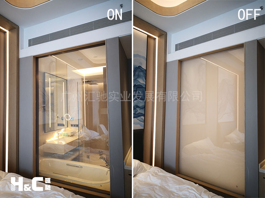 酒店方通過考察對比,最終選定了我公司的調(diào)光玻璃作為衛(wèi)浴玻璃隔斷的供應商,總量約800平方米,應用于200多間客房,給入住的賓客帶來新鮮的體驗。