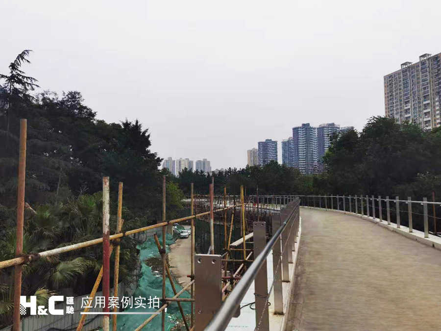“絲路云錦”有三條跨線橋,外形設計靈感來源于“竹葉輕”,其中一座橋上的護欄采用了匯馳LED發光玻璃。它將單個LED點光源封裝在兩片鋼化安全玻璃中間,并使用隱線工藝,不細看基本看不到線路,這樣既保持了玻璃的透明特性,又可以控制呈現光電效果,創造出美妙的空間,起到獨特的裝飾和調節場景氛圍的作用。