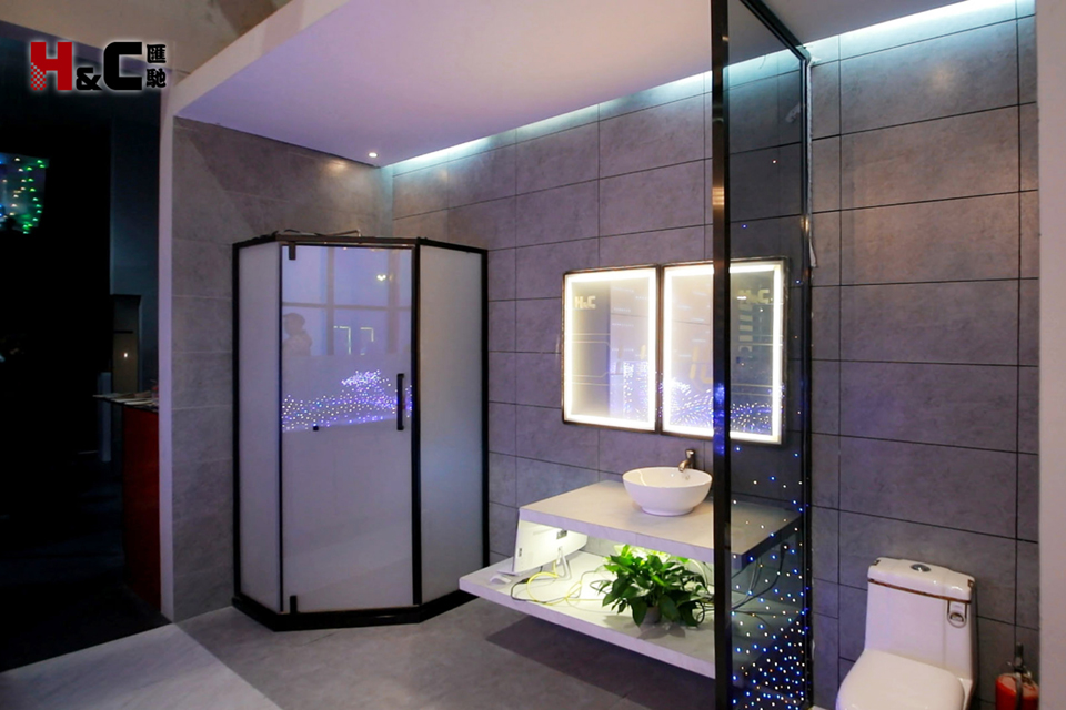拉開淋浴房的門,玻璃自動變透明;進去后關(guān)上門,玻璃自動變霧化。秘密的沐浴空間,即刻擁有。不使用時,還以可通過另配的遙控器,獨立操控玻璃透明和霧化。