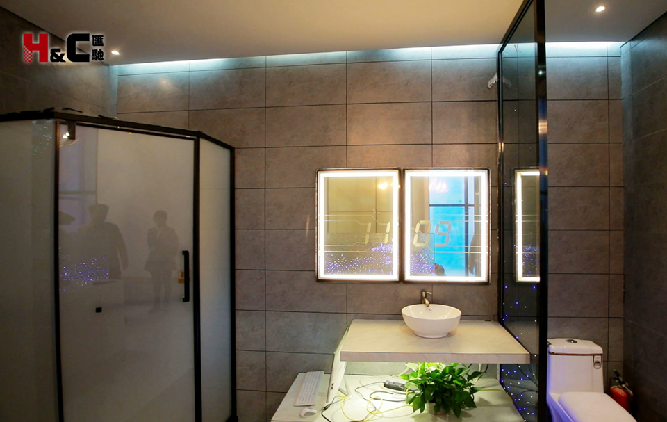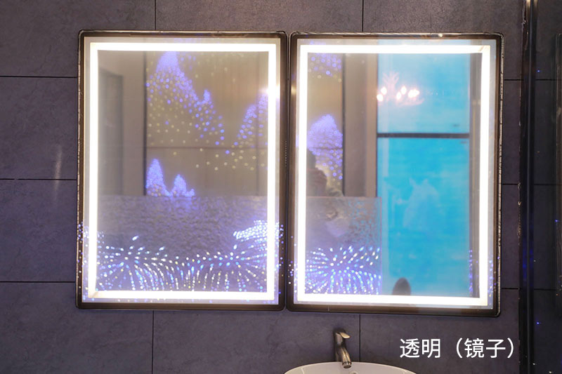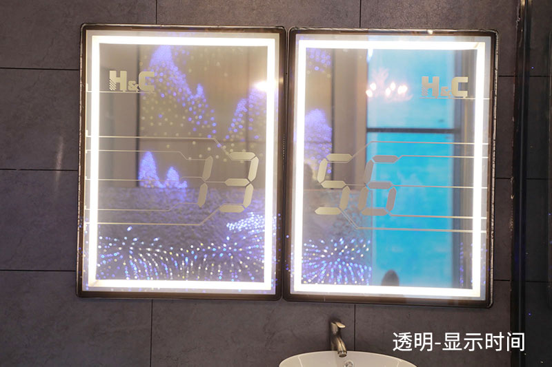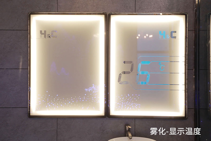 在鏡子上顯示時間、溫度,這是調(diào)光膜的一種特殊應(yīng)用。一般情況下,鏡子上交替呈現(xiàn)當前的時間和室內(nèi)溫度。當有人站在鏡子前面的時候,時間和溫度自動消失,它就變成了普通的鏡子。鏡子周圍的燈光可通過手勢來打開和關(guān)閉,非常方便。