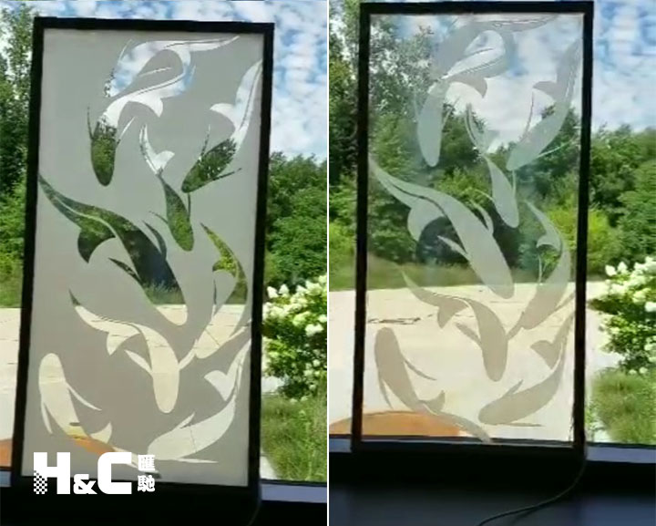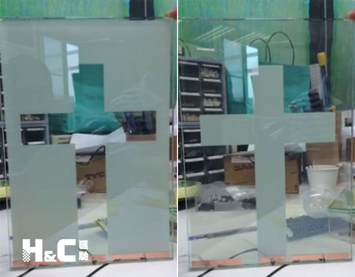 一按開關(guān),玻璃透明;再按開關(guān),玻璃霧化。這是調(diào)光玻璃的小樣品演示效果。很多朋友剛拿到它,感覺特別神奇有趣。可是好像也不怎么好玩呀?別急,更好玩的還在后面。