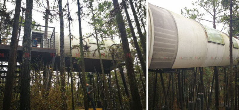 光看外觀造型,估計大家很難想到這是住人的房子吧!在郁郁蔥蔥的樹林中,這樣的房子無疑會引起人們的極大興趣,并產生在里面住宿一晚的想法。