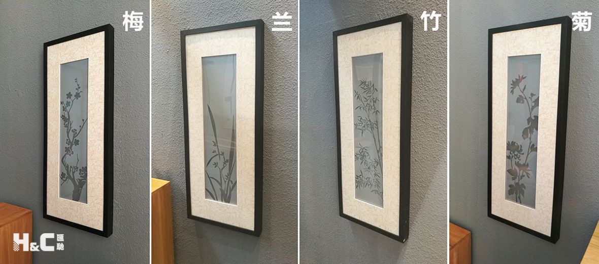 這是一種用電來控制的電子畫。它的特點在于,畫上的圖案是可以控制顯示或隱藏的。聽起來很不錯吧?上圖就是刻繪了梅、蘭、竹、菊的四幅電子畫。