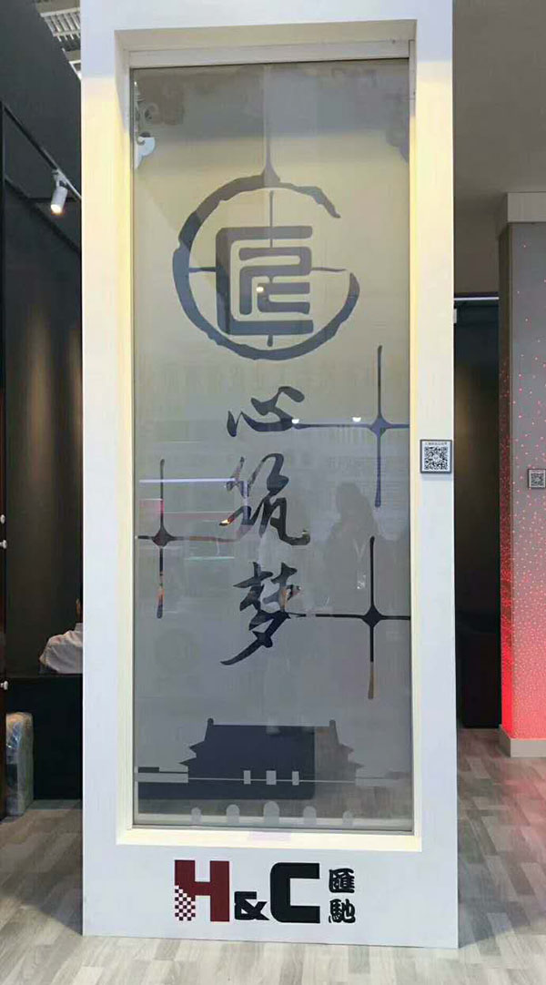 我司此次展示的分區(qū)調光玻璃有3大片,其中最吸引觀眾的就是這片玻璃。“匠心筑夢”4個字,反映了當今企業(yè)發(fā)展所需的專注、求精和堅持的工匠精神,也表明了我公司對產(chǎn)品的態(tài)度。而天安門廣場的圖形,則表示我們這次展會的地點是北京。